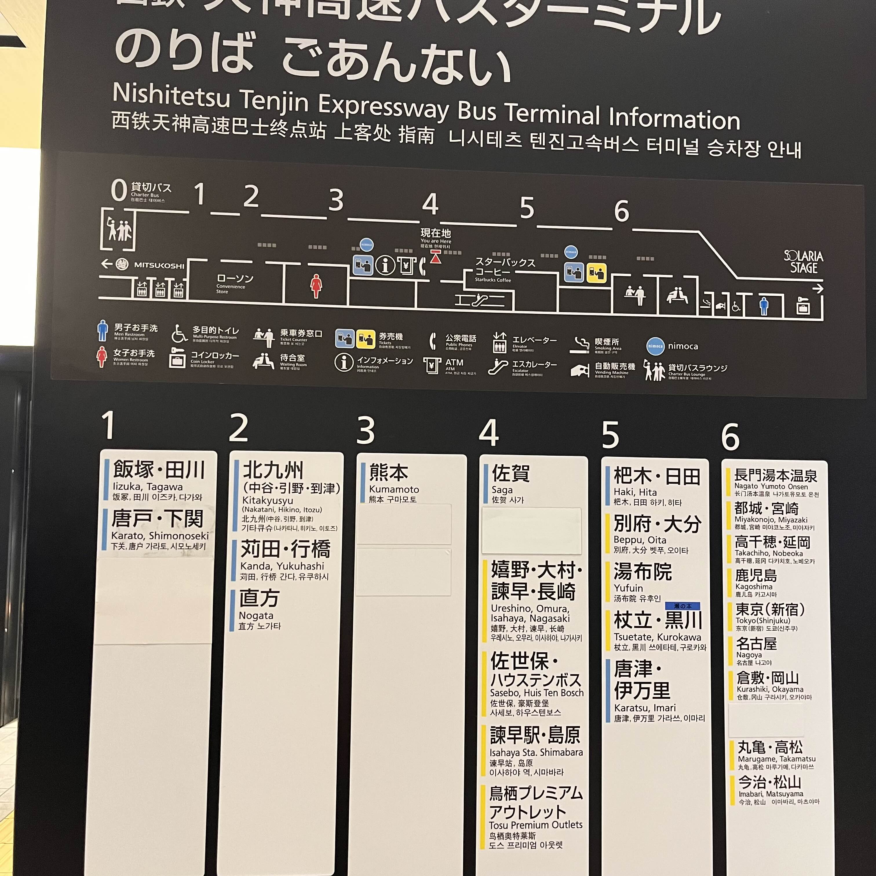 니시테츠 텐진 고속버스터미널 승차장 안내 자세하게 나와있고, 직원분도 엄청 친절하게 알려주셔서 전혀 어려움없이